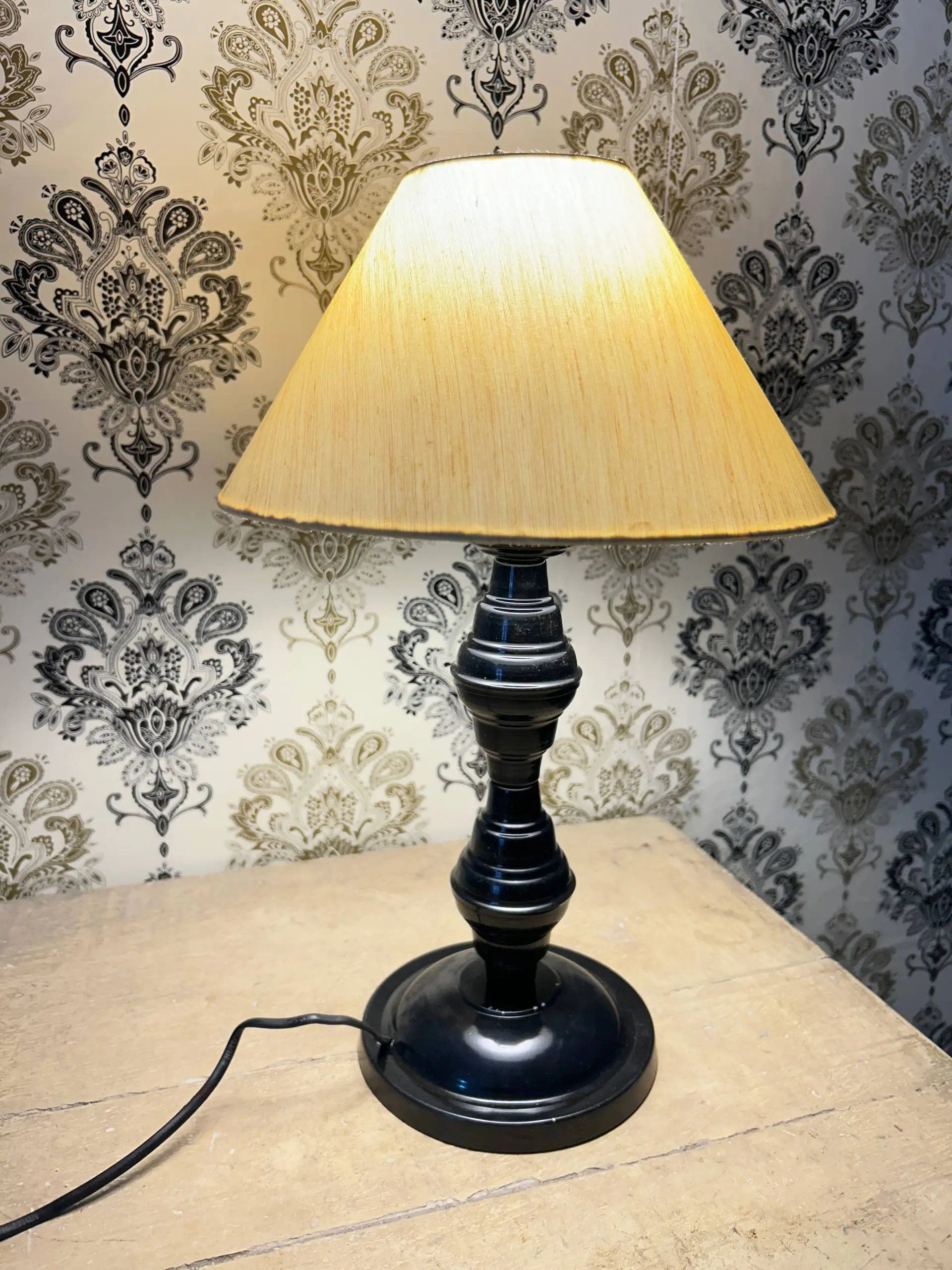 • Material: Metal base with fabric lampshade